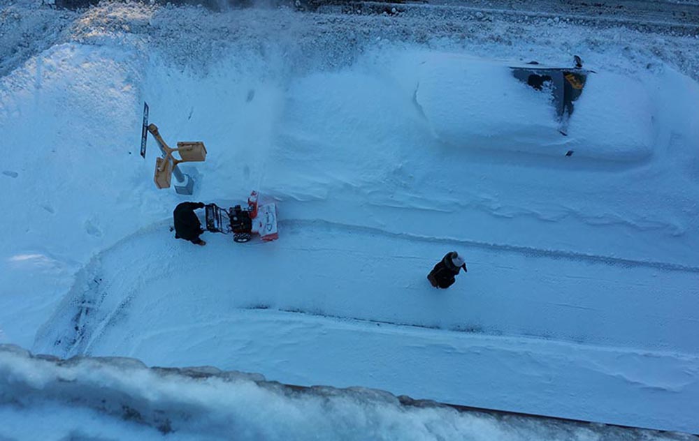 Not so hard to pull out of a parking spot but I'm not sure about the little smart car covered in snow.