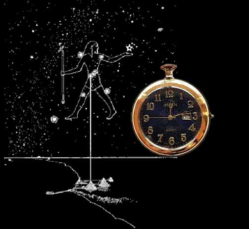 Giza Plateau ... 12/12/2000 ... Full Moon ... Midnight ... I inched my way closer to the dark side of the Great Pyramid as security guards patrolled the area . Above I could see Orion and the full moon lighting my way. That would be the last time I saw Orion as magic happened and my blue and gold pocket watch disappeared then later that evening magically reappeared to me and my friend Irene looked on. Time is an illusion - we are having moments. Every year at this time those energies resurface this year featuring a surprise visit from my friend El Sherif.