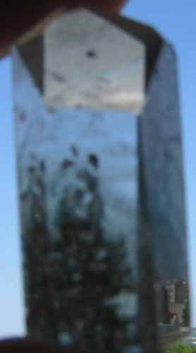 Alone at dusk, in the mountains, I leaned against a large rock, closed my eyes, and waited for messages from Z. I held a light green clear quartz crystal in my hand that had been given to me a month before. A strong wind suddenly blew up as I stood there, but I did not open my eyes. As I spoke to Z, I felt that I was experiencing an initiation that would transform me forever. Messages where given allowing me to further understand why I am here. Later when I returned to my hotel room, I discovered a hologram had formed as if carved into the 3-inch vertical crystal.