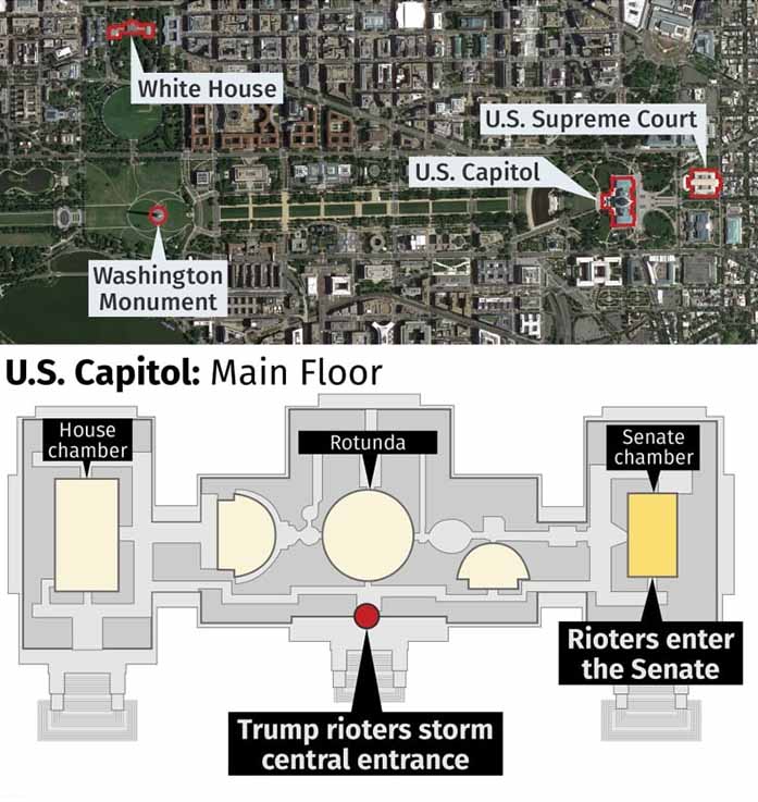 About 90 minutes later, they were inside the Capitol, where Capitol police say they were overwhelmed by the crowd, though police unpreparedness poses questions. Others inside the building, including Congressional staff, legislators and Vice President Mike Pence, were evacuated or told to seek shelter.