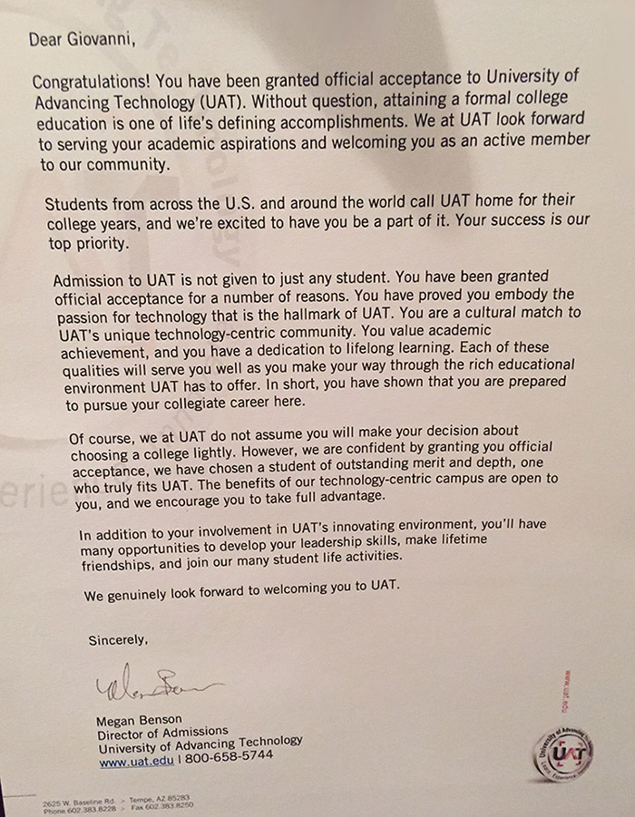 Jason and I plan to attend the University of Advancing Technology in 2018