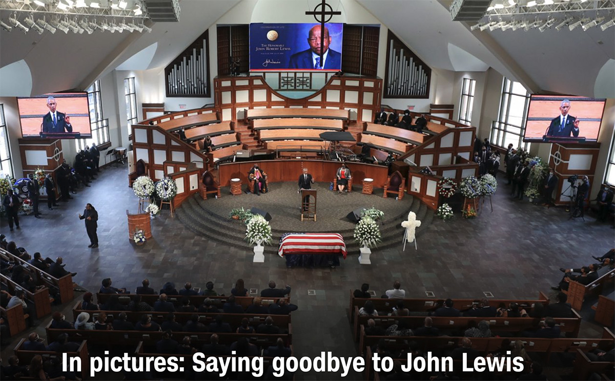 Sunday July 26, 2020 - I watched the memorial for John Robert Lewis (February 21, 1940 - July 17, 2020) an American politician and civil-rights leader who served in the United States House of Representatives for Georgia's 5th congressional district from 1987 until his death in 2020 from pancreatic cancer. Lewis served as the chairman of the Student Nonviolent Coordinating Committee (SNCC) from 1963 to 1966. Lewis' body crossed the Edmund Pettus Bridge in Alabama one last time Sunday. The Selma bridge is where he helped lead the 1965 march for voting rights. After that: Lewis' body will lay in state in at the Alabama State Capitol in Montgomery.
