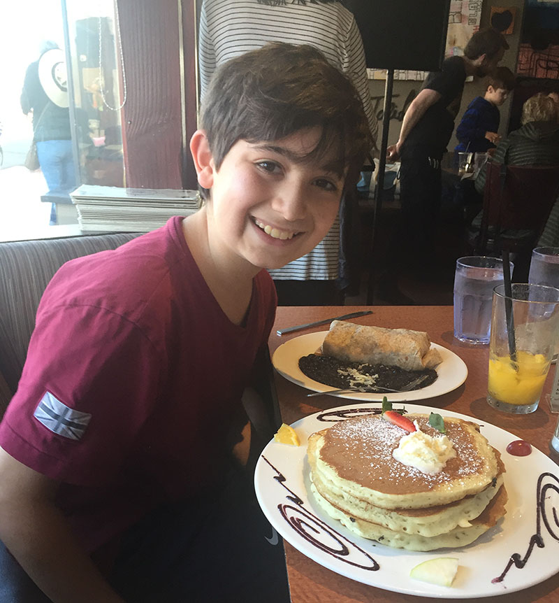 Matthew's brother Noah 12 - Breakfast in San Diego - Bar Mitzvah this weekend in Connecticut