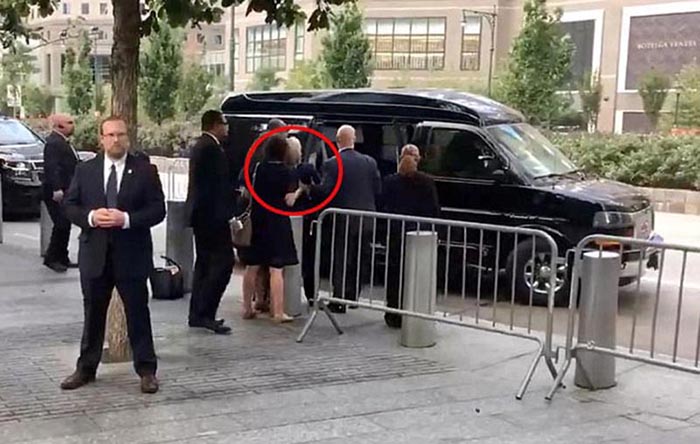 It all looked like another day honoring those whose lives were lost on 9/11 until events were overshadowed by Hillary Clinton ... the cameras panning to her trying to enter her car and nearly fainting. It was later reported that on Friday she was diagnosed with pneumonia and forgot to tell the public who are most concerned about her medical issues due to age and past history. With pneumonia contagious, why go to your daughter's house where there are young children and expose them to infection. Also ... doesn't an emergency room seem like the best place to go?