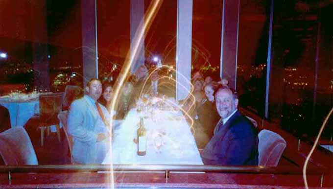 Years ago my friend Ron sent me these pics of him with several business associates during a Christmas party at Windows on the World months before 9/11. He often wondered if this was an omen of things to come for the Twin Towers and the world. Streaming lights are actually movement of the camera but it's always interesting to denote meaning when they show up.