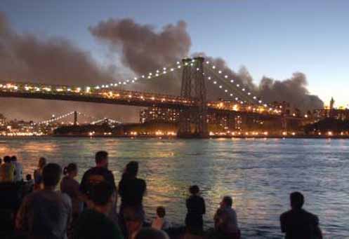 Friends in Park Slope and Brooklyn Heights reported walking home from work over the Brooklyn Bridge through soot and smoke. There has been expensive damage to that part of Brooklyn, which is south of Manhattan and includes many industrial areas and the municipal buildings.