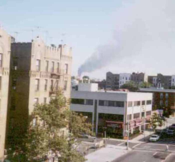 My daughter, Zsia, called to tell me to put on the TV as the Twin Towers had been hit by a plane. I ran to my terrace arriving just in time to see the second plane hit the South Tower at 9:03. I grabbed my camera and took pictures as the towers imploded. It all seemed so surreal as I stood there.
