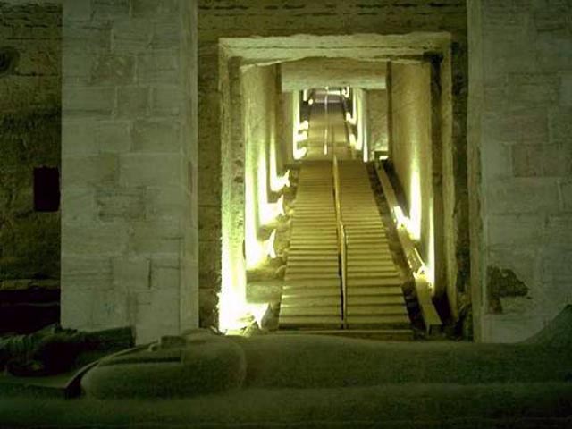 One of the most stunning finds of royal statues dating to his reign was made as recently as 1989 in the courtyard of Amenhotep III's colonnade of the Temple of Luxor where a cache of statues was found, including a 6 feet (1.8 m)-high pink quartzite statue of the king wearing the Double Crown found in near-perfect condition. It was mounted on a sled, and may have been a cult statue. The only damage it had sustained was that the name of the god Amun had been hacked out wherever it appeared in the pharaoh's cartouche, clearly done as part of the systematic effort to eliminate any mention of this god during the reign of his successor, Akhenaton.