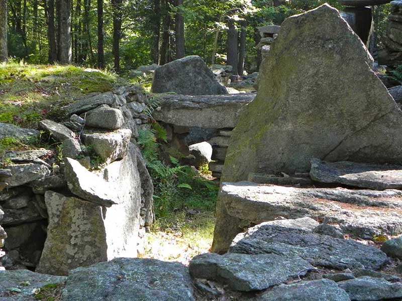 In 1823 Mystery Hill became the property of a settler named Jonathan Pattee. The recent history of the hill starts with him. Pattee was a farmer who lived on the site from 1826 to 1848. There are many different and conflicting stories about Pattee, including that he was a robber, ran an illicit still, and operated a stop on the famous 'underground railroad' that spirited escaped slaves from the south to safety. One thing for sure is that he used one of the structures as a cellar for his farmhouse. Rumors abounded that Pattee had built the structures, with the help of his five sons, for no apparent reason. This seems unlikely as one of the site stones was found locked in the stump of a tree that started growing around 1769, long before Pattee came to the area.