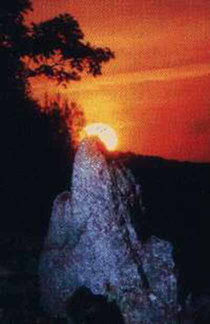 Found across the Mystery Hill site are huge monolithic standing stones (some now fallen) all of which line up to sun, moon or star alignments as seen from a central viewing slab located by one of the earlier researchers at the site. From this slab, monoliths align to the Midwinter solstice sunrise and sunset, the November one sunrise and sunset, the Spring and Fall Equinox sunrises and sunsets, the May one sunrise and sunset, the Midsummer solstice sunrise and sunset, the August one sunrise and sunset and true north. This stone is aligned to the star Thuban, the pole star of 2,000 B.C. On these days the sun will either rise or set above worked monolith stones. Exact alignments coincide, according to scholars and astronomers, with a date of 2499 B.C. - 1900 B.C.