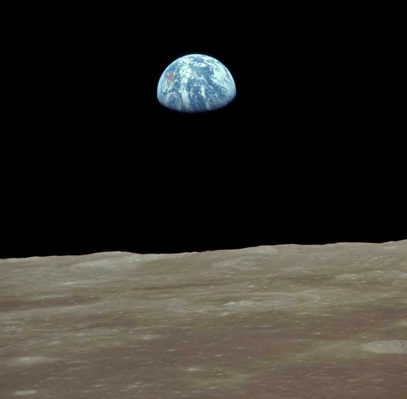 It suddenly struck me that that tiny pea, pretty and blue, was the Earth.
