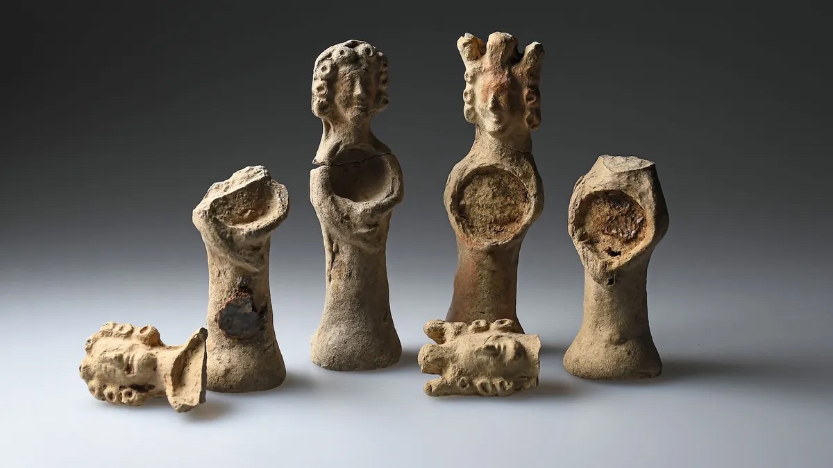 Two cylindrical clay sculptures may represent dancers who performed at a funeral 1,500 years ago.