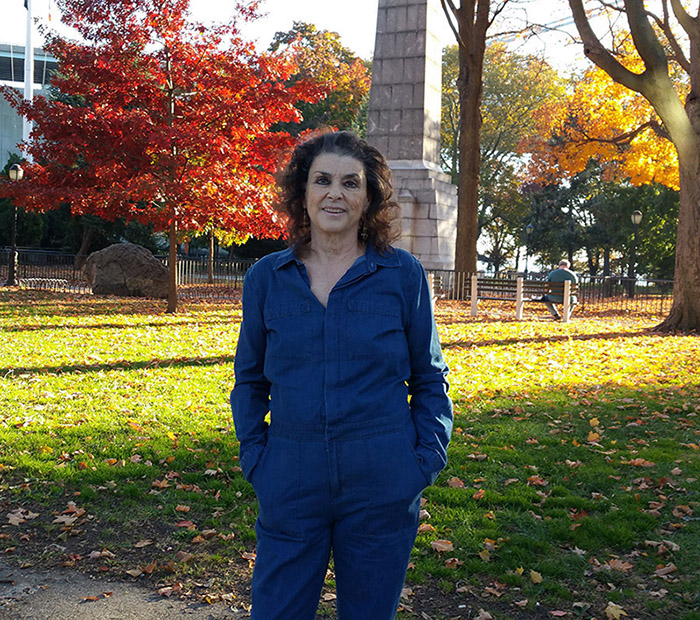 Ellie, the tree, the obelisk, JohnPaul Jones Park in Brooklyn