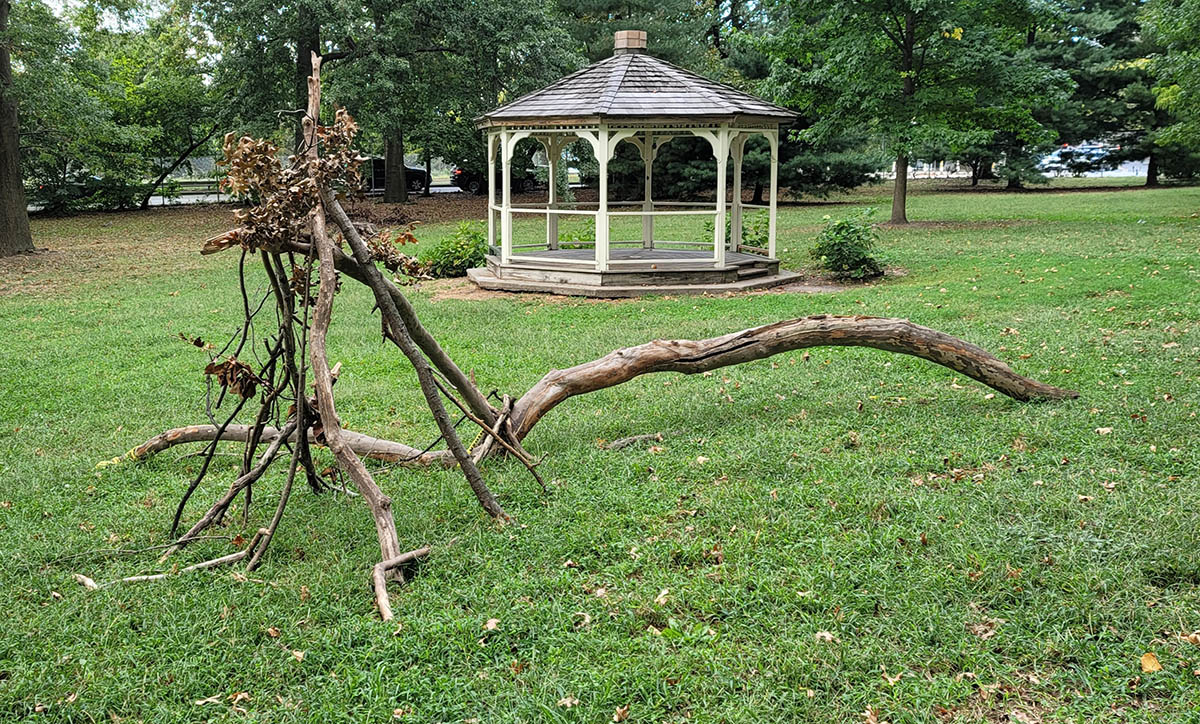 Another view of the branch concept. Do you suppose they wound up this way by accident? Placed there by the Parks Department for pick-up? Native American ritual on the Full Harvest Supermoon Partial Lunar Eclipse this week? A bunch of kids having fun? This is more interesting than some nature sculptures I've seen along the way ... Why? Because it makes you wonder and takes you away from ... whatever.