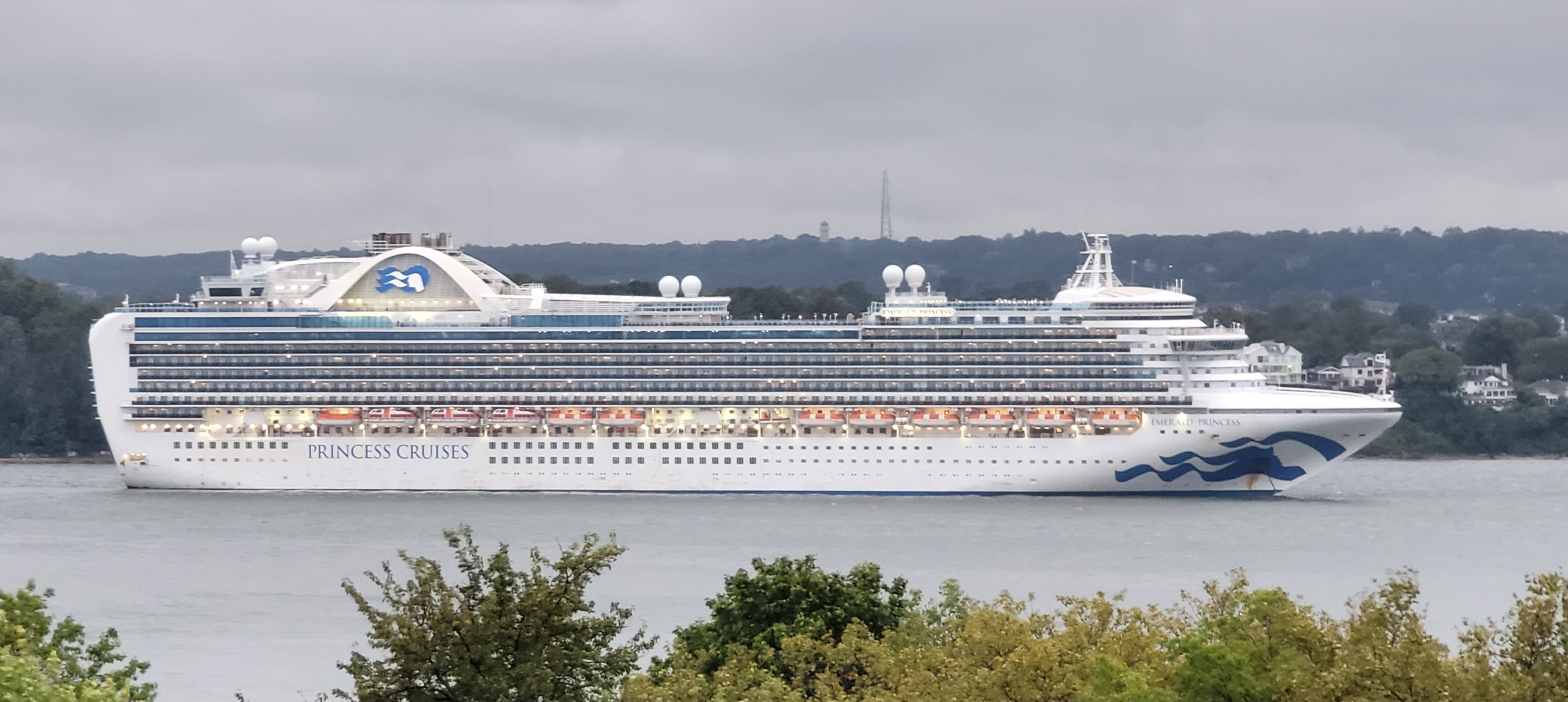 Due to Tropical Storm Ophelia - ocean liners normally headed out to sea had to wait in line for safe passage. The flashing lights coming from the various decks of the ship was pointed in my direction as I was taking pictures of them. The Emerald Princess finally set sail 8:15am Sunday morning.