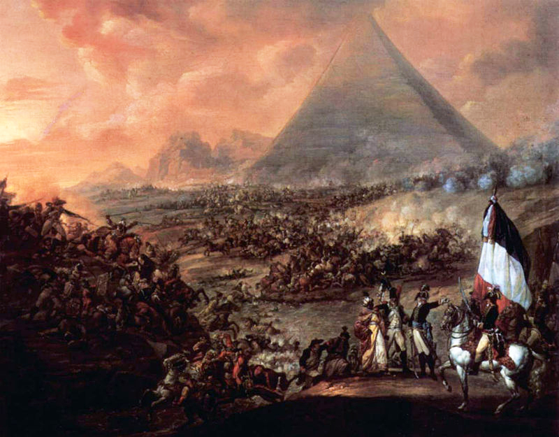 After capturing Alexandria and crossing the desert, the French army lead by General Napoleon Bonaparte, scored a decisive victory against the main army of the local Mamluk rulers, wiping out almost the entire Ottoman army located in Egypt. It was the first battle where Bonaparte personally devised and employed the divisional square tactic to great effect. The deployment of the French brigades into these massive rectangular formations repeatedly threw back multiple cavalry charges of the Mamluks.
