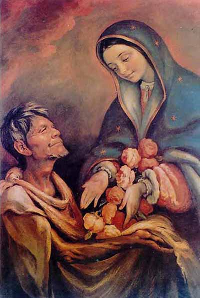 12/12 is the Feast Day of Our Lady of Guadalupe when an Apparition of Mother Mary appeared to Juan Diego near Mexico City on December 9, 1531. The Virgin told Juan Diego to gather flowers from the top of Tepeyac Hill, where he found Castilian roses, not native to Mexico, blooming in December on the normally barren hilltop. The Virgin arranged the flowers in his tilma or cloak. When Juan Diego opened his cloak before Bishop Zumarraga on December 12, the flowers fell to the floor. On the fabric was the image of the Virgin of Guadalupe.