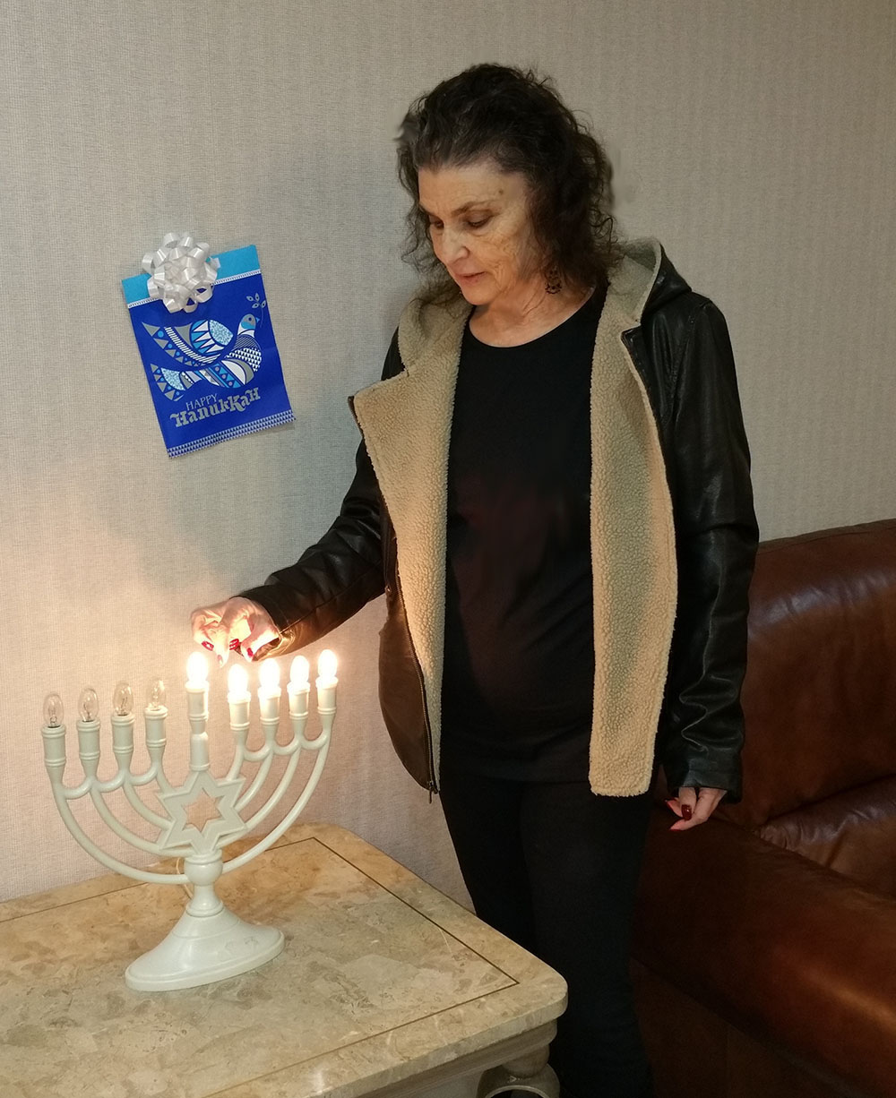 On this night I recited the Chanukah blessing for my friend Pat and several of my neighbors in the lobby while lighting the candle.