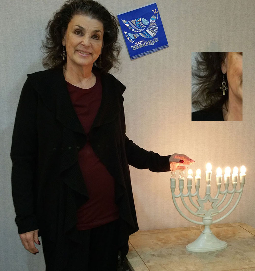 December 11, 2015 - For some reason I knew I had to wear my Gold (Alchemy) Ankh Earrings with Garnet Stones today - somewhere there would be an Egyptian connection. Sunset was at 4:29 pm Eastern Time. Around 5:00 off I went to the lobby of my building, with cell phone in hand, ready to light the 6th candle and take a picture. As Jose the doorman took the picture, and the flash went off, it was as if a flash went off in my head. When Jose handed me the phone, Z said, "Check the time". It read 5:12pm which would be 12:12am in Egypt. In the elevator, my thoughts turned to my adventures on 12.12.00 in the Great Pyramid and the symbology of it all on the New Moon 19° Sagittarius ... its energies surrounding me as I went home.