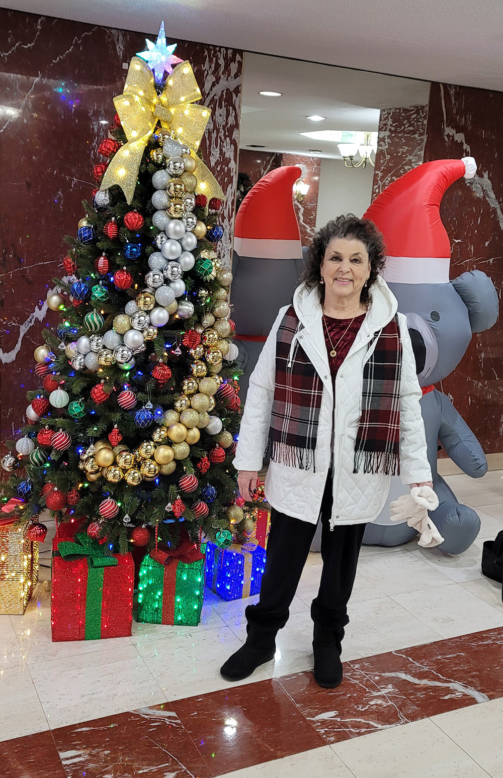 Bella and her Christmas Toy - Hanukkah Ornaments on a Xmas Tree