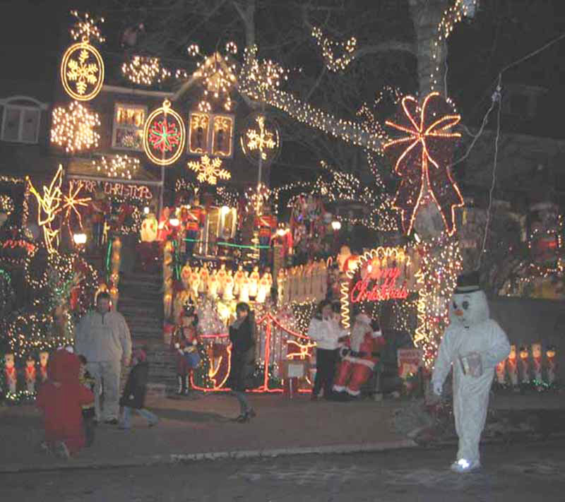 The residents of Dyker Heights are known for their annual Christmas Displays that are often in the news. Throughout the area one stands in awe gazing at the fabulous displays, complimented by Christmas music, live characters, people giving out candy canes, and more.