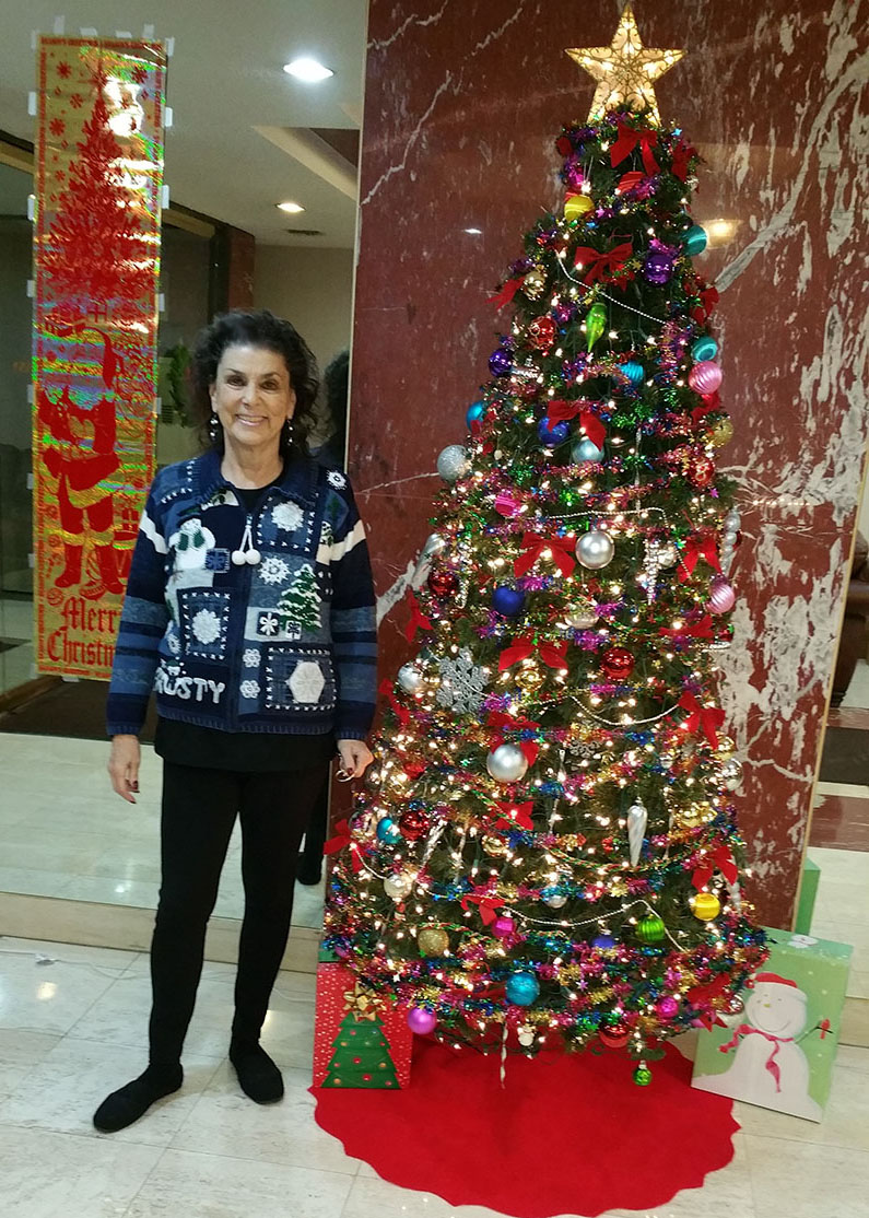 Sunday I told Z that I wanted a Christmas Sweater to wear today. I asked for a navy and white cardigan. He sent me to eBay then told me what to type and voila there it was on the first page. Great bargain at $12.00 + shipping. It was shipped from Illinois first thing Monday morning. Through the week I tracked it across the country on its journey home. I got it today just in time. I love it!