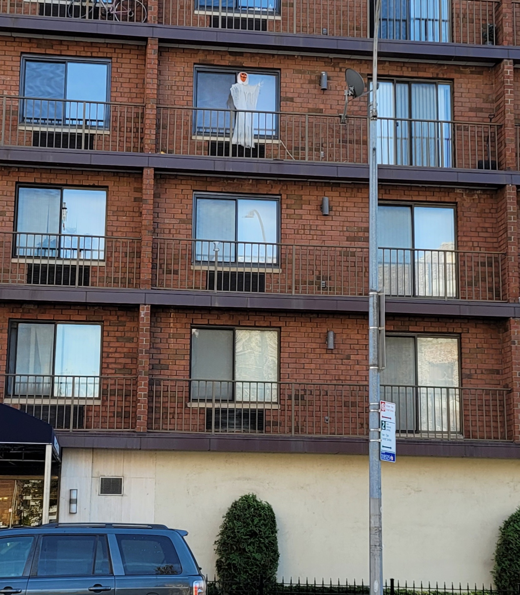 Halloween decorations generally fill my area of Bay Ridge at this time - but the energies this year are different. One lone ghost can be seen on the fourth floor as a physical decoration - or perhaps symbolically as a ghost of the past.