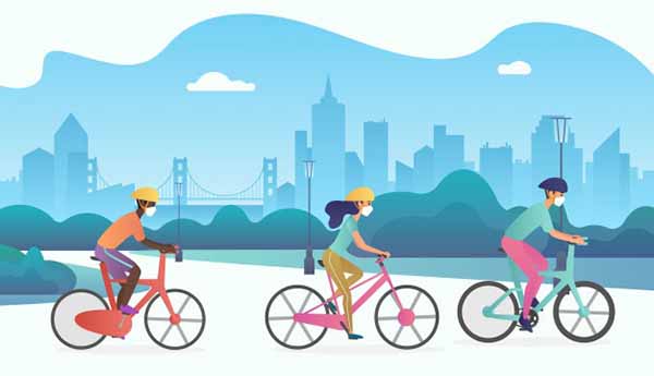 The rules when riding a bicycle are not unlike those for walking during coronavirus. Wear a mask that allows you to breath properly. Social distance. Ride alone or with other family members you know are coronavirus free. Be courteous. Try to avoid talking on your phone. Wipe down your bike before and after riding. Gloves are not a bad idea.