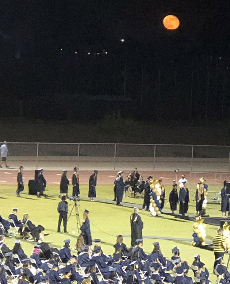 This has been a crazy school year due to Covid. Most students from the Class of 2020 missed graduation but the Class of '21 is enjoying outdoor graduations in most areas. In Arizona my granddaughter Joie graduated from Castillo High School under the Super Flower Full Blood Moon Total Lunar Eclipse in Sagittarius ... accompanied by what appears as one of those triangular UFOs known as the Phoenix Lights.