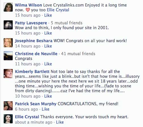 When I look back over the past 18 years, which is 2 cycles in numerology, so much has changed. Crystalinks started with 50+ files, its location (server) for the first year being www.interport.net/crystalinks.html. Though I had met thousands of people through my media work before the internet and Crystalinks, nothing was to prepare me for the great adventure that was about to unfold, and the amazing relationships that would develop along the way.