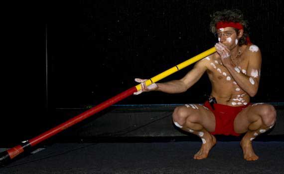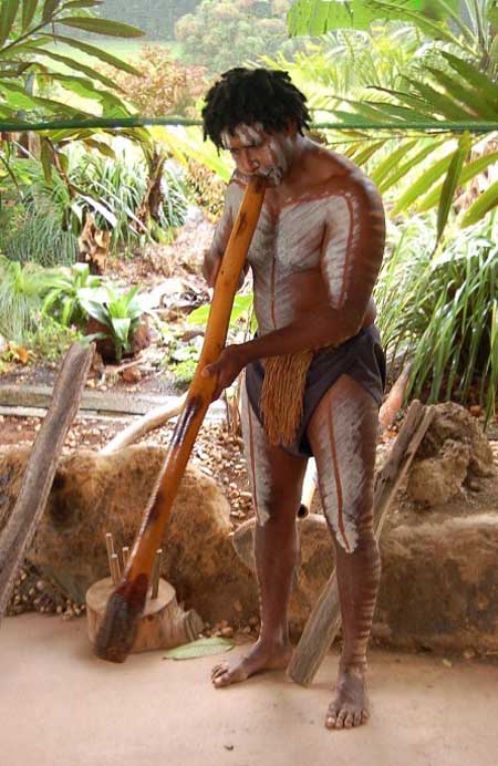 The didgeridoo (also known as a didjeridu or didge) is a wind instrument developed by Indigenous Australians of northern Australia around 1,500 years ago and still in widespread usage today both in Australia and around the world. It is sometimes described as a natural wooden trumpet or "drone pipe". Musicologists classify it as a brass aerophone.