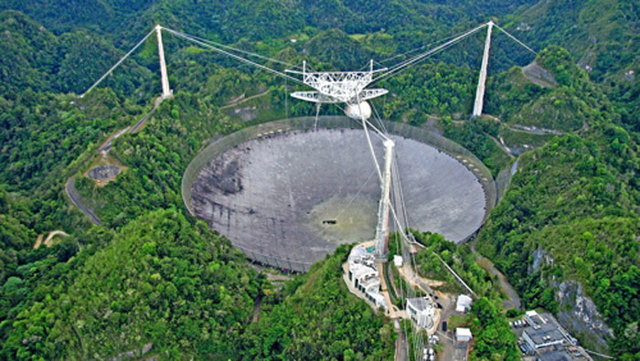 In Puerto Rico we find the Arecibo Observatory a radio telescope constructed in the 1960s. On September 21, 2017, high winds associated with Hurricane Maria caused the 430 MHz line feed to break and fall onto the primary dish, reportedly damaging about 20 out of 38,000 aluminum panels. Because most Arecibo observations do not use the line feed but instead rely on feeds and receivers located in the dome, it is unclear how much impact the loss will have on future observations. Arecibo Observatory Still Standing After Hurricane Maria Ravaged Puerto Rico