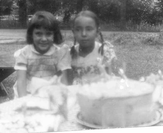 Cue this image - Ellie age 6, Monticello, NY, July 4, 1949, birthday party of my best friend, Sarah.