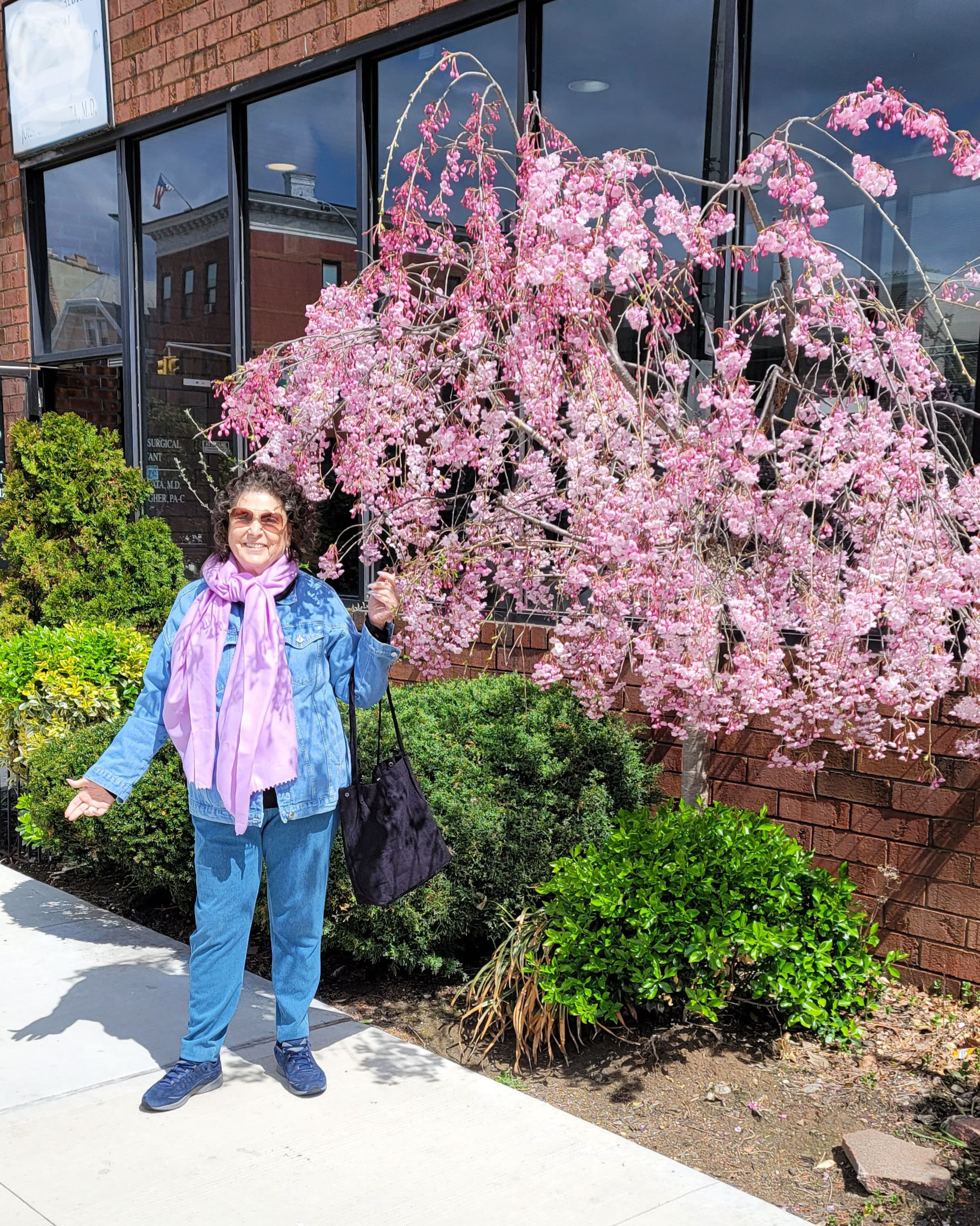 On my way home from lunch with my friend Gregory - we passed this cherry blossom tree starting to bloom. I love the way the branches hang over - its blooms swaying in the breeze of a windy overcast day. Gregory said a pic would come out dark - to which the sun came out just long enough to take the pic. Weather mojo.