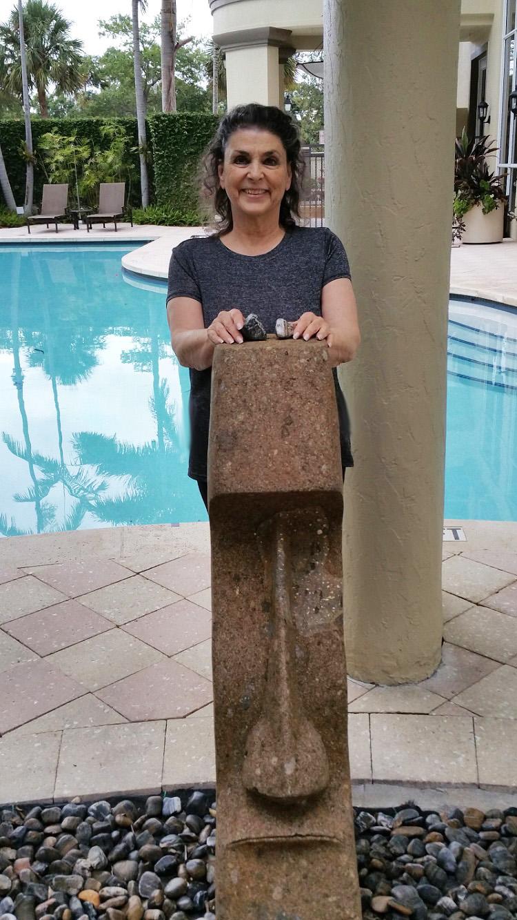 The statue was standing in an area filled with beautiful tumbled stones. I suppose I'm not the only person who feels guided to stand behind it and either place something above as if ceremonial ... then do whatever comes to mind. For me if was just fun. Ouch! George stopped the camera abruptly because he got bitten by one or more mosquitoes. Itch!