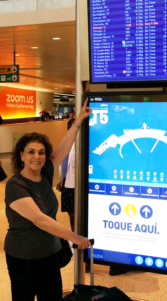 Arriving at the airport --- > the driver pulled up to the curb, which is not easy at JFK. I had already paid him after which he walked around to the back of the car, brought my suitcase to the curb finally noticing that I was desperately trying to open the door to no avail. I banged on the window and shouted, "I'm locked in!!" to which he ran around to the driver's side of the car and unlocked the doors apologizing. Okay ... They say travel of any kind is not easy so let's enter the terminal.