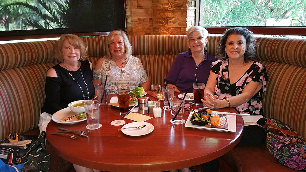 12:00 PM give or take ... George and I were greeted at Seasons 52 in Boca Raton by Linda and her husband Alan. Hugs, kisses and introductions as George had never met my friends from back in the day which seemed like another lifetime as we sat there. Alan told George the story about how I introduced him to Linda then I shared how George and I met in a crystal warehouse in Manhattan exactly 14 years ago. We laughed and chatted until Marilyn and Anita arrived ... cue the men to leave. After lunch we drove to a local mall where we sat near a waterfall sharing more life's experiences.