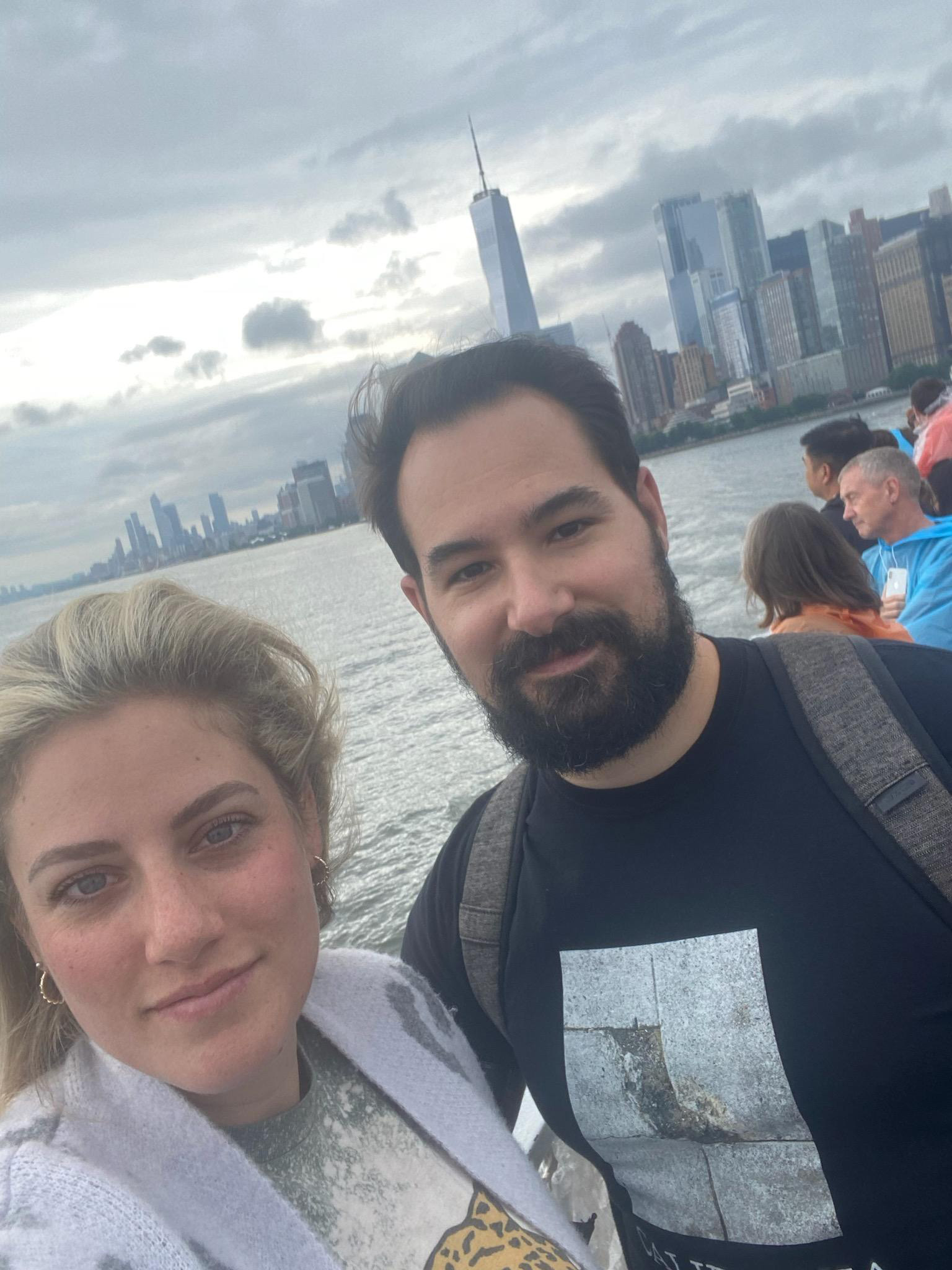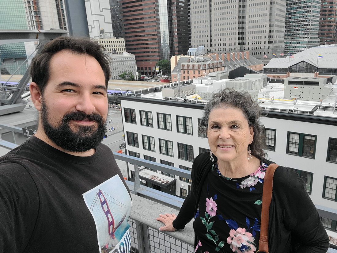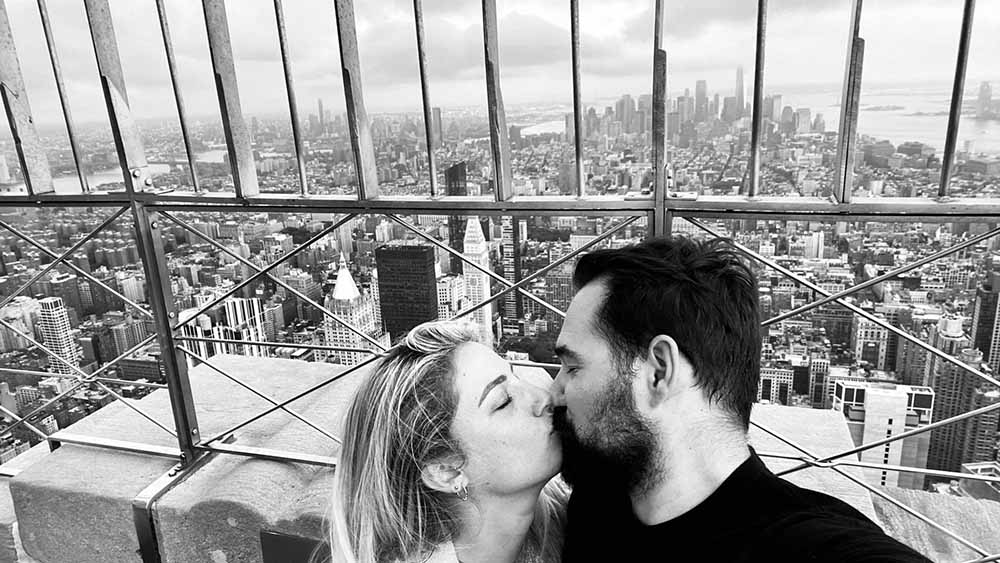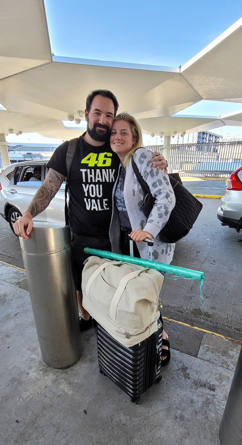 Through the overcast horizon two first cousins from opposite ends of the country share parting moments.