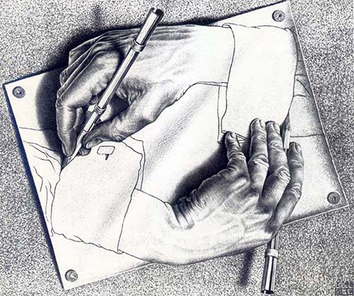Drawing Hands is a lithograph by artist M. C. Escher whose works are