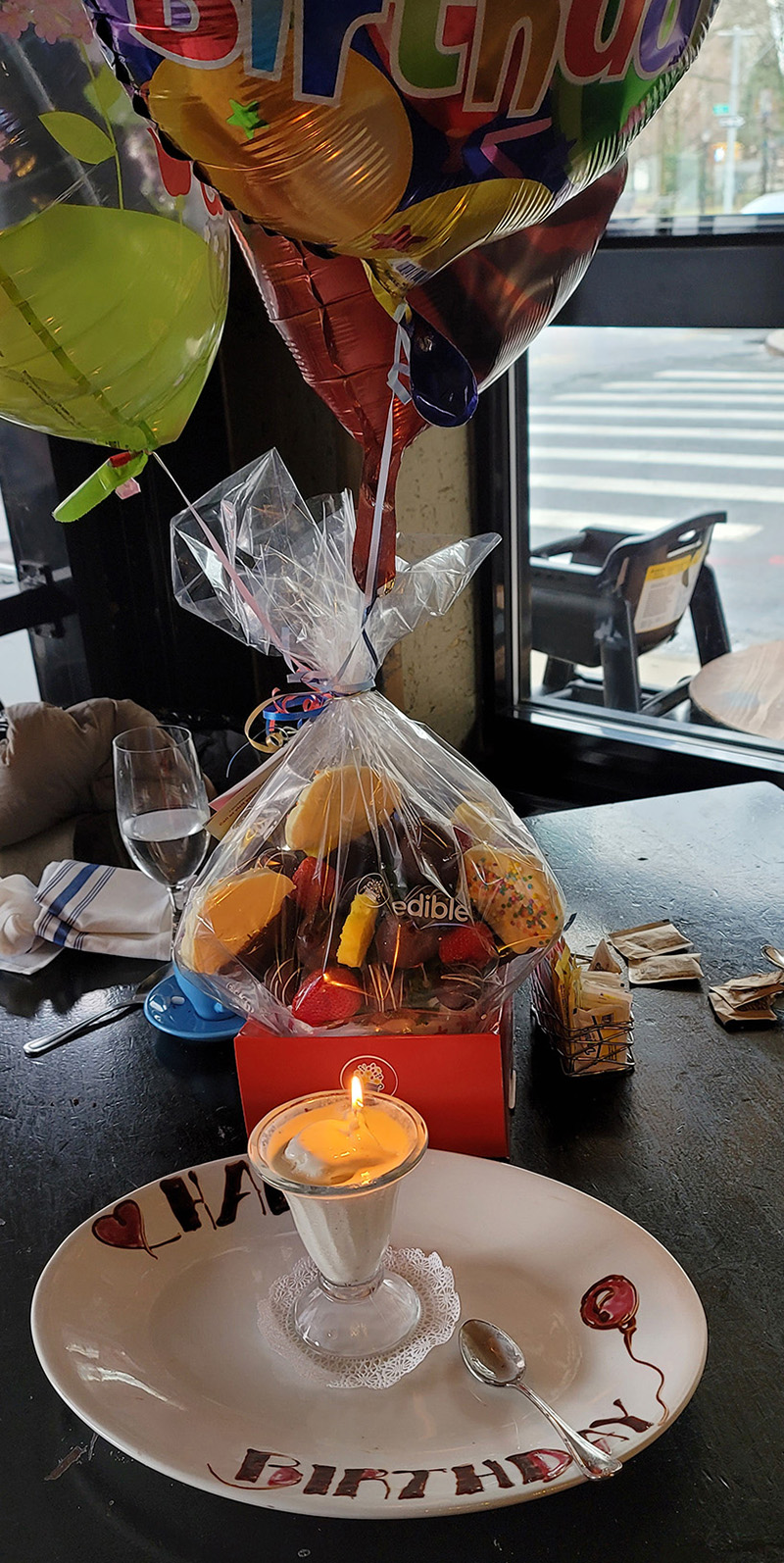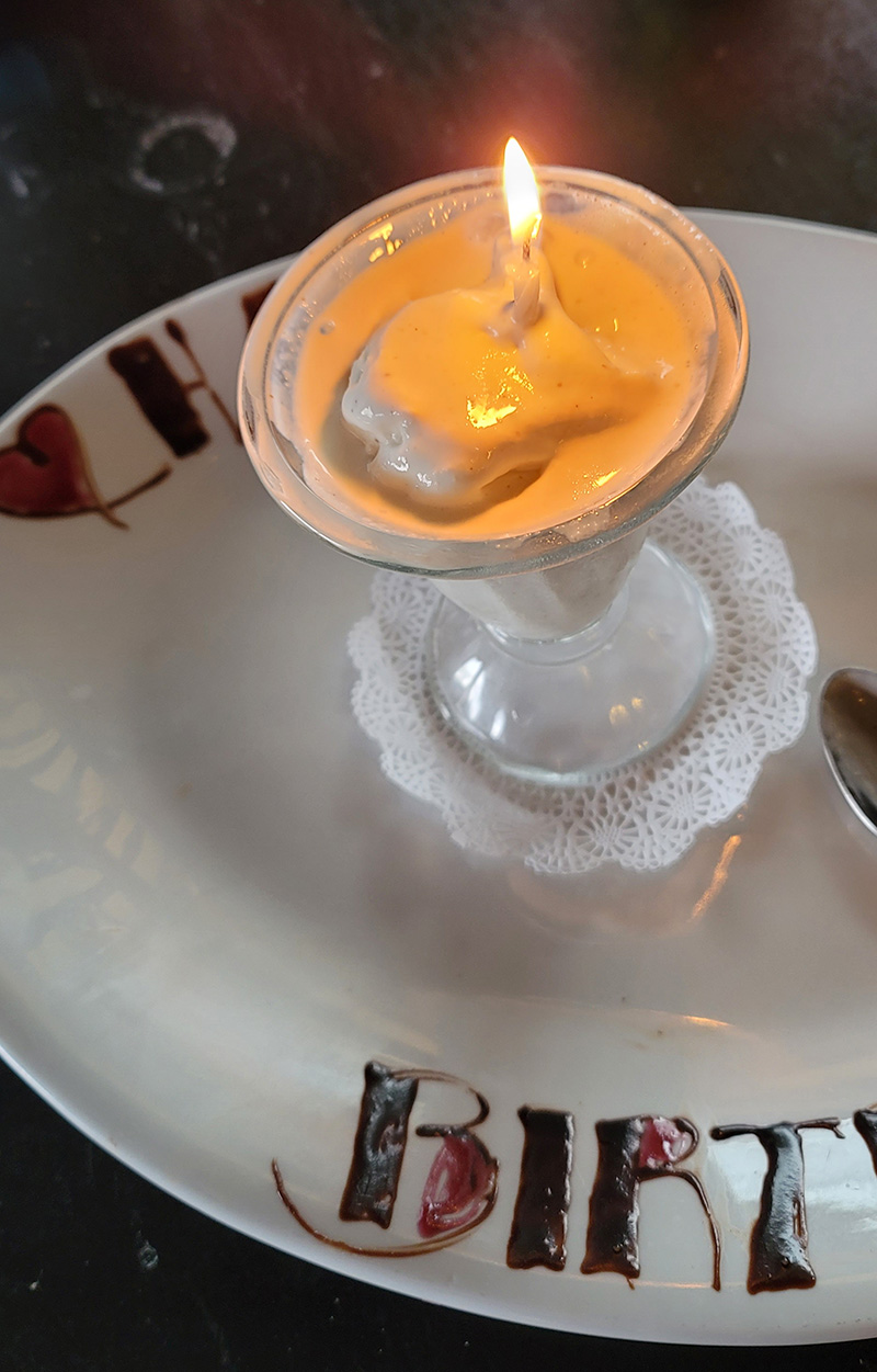 I was pointing to his birthday candle. Since it was a public place I assume that my Ellie projection was frozen in time and this one inserted with emphasis on the candle and flame though not captured by the photo.