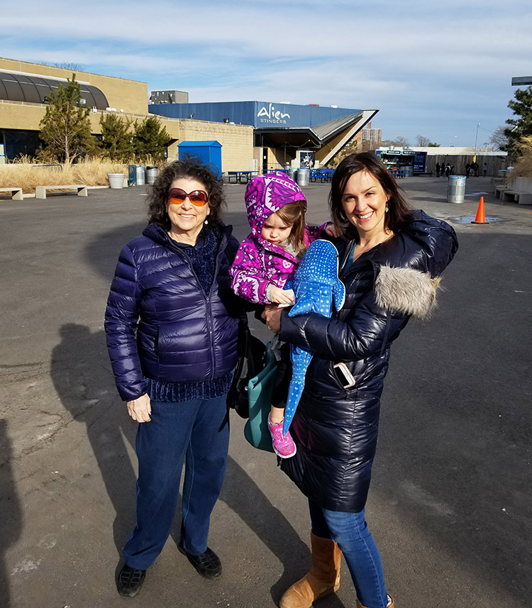 I spent my actual birthday with my friend Jen and her daughter Olivia, 3. Where do you take a 3 year old for lunch? L & B Spumoni Gardens. I really didn't want anyone else to sing Happy Birthday to me but as fate would have it, a woman at the next table was also celebrating her birthday ... more singing and a cake made of ice cream cones... one for each person at the table. From there we went to Coney Island stopping along the way for treats then off to the NY Aquarium.
