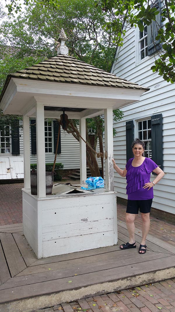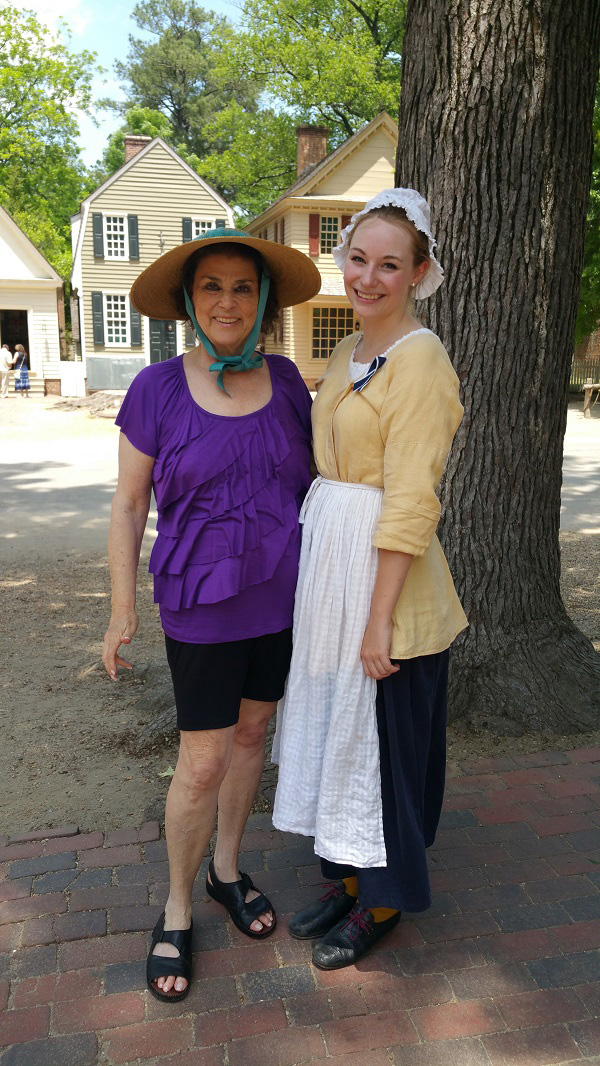 Back in the lobby, several people returned from a tour of the ongoing archaeological sites in the area. We considered taking the next tour, but it was getting too hot, so we drove back to Colonial Williamsburg. John took me to a late lunch at one of his favorite restaurants, the famous Kings Arms Tavern after which we strolled along and met some of the local people in costume.