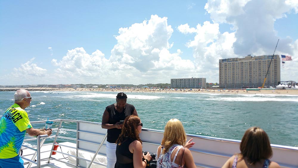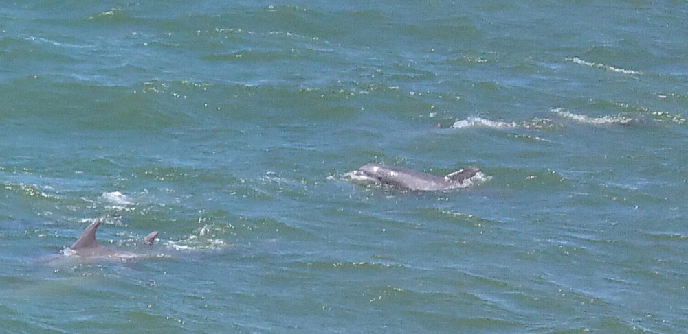 Our next adventure, something I had been waiting for, was a charter boat tour to see the sights along Virginia Beach and watch the dolphins. I only took one picture of them, but luckily that was enough to capture a group of five baby dolphins, as they momentarily rose from the water. To be honest, what I actually did was send them this telepathic message, "I'm only taking one picture so jump up ... and here we go." I guess they heard me. It really was very hard to capture them, as the boat started listing and bobbing, making it very difficult to hang on and grab a picture.