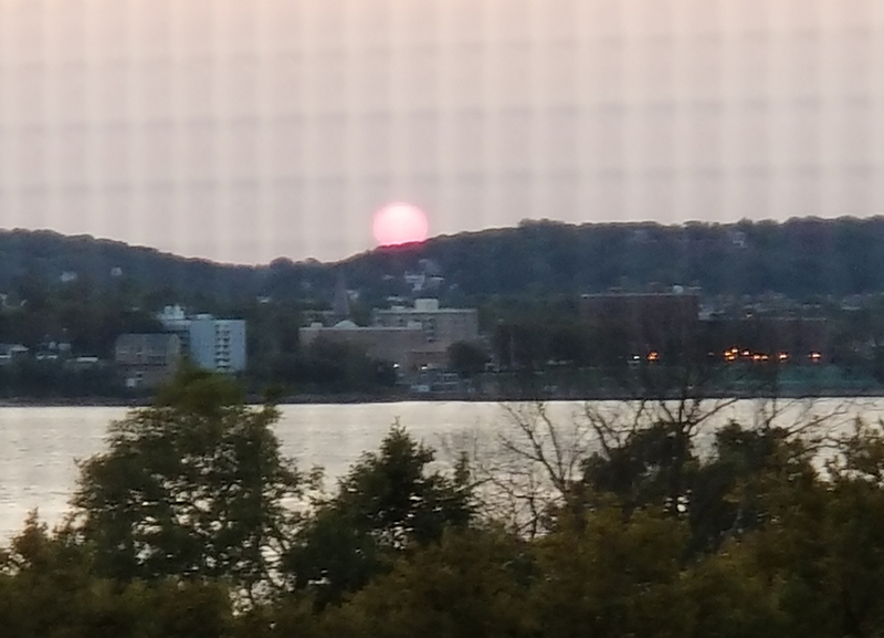 The setting sun Tuesday evening looked like a shiny pink marble. But why is there a grid (matrix) over the pic as if taken through a screen when I was out on the terrace? I took several other pics afterwards ... no grids. Hmm ... I scrolled to the pic above and noticed windows that looked like a grid behind the countdown clock. Double hmm ...