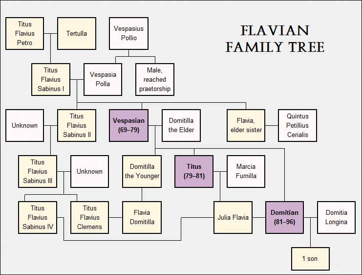 The Flavian dynasty was a Roman Imperial Dynasty, which ruled the Roman Empire between 69 and 96 AD, encompassing the reigns of Vespasian (69-79), and his two sons Titus (79-81) and Domitian (81-96).