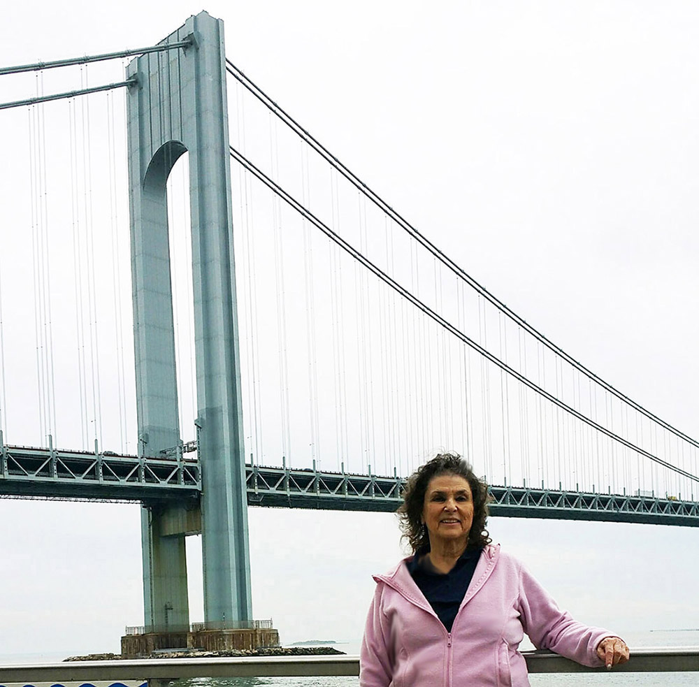 Ellie at the foot of the Brooklyn Bridge - December 2015