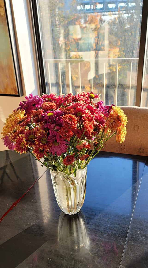 Three weeks ago my daughter Zsia and her husband Jon brought me flowers when they came for a visit. The flowers are still alive and well and living in Brooklyn in the energies of 'Ellie's World'.