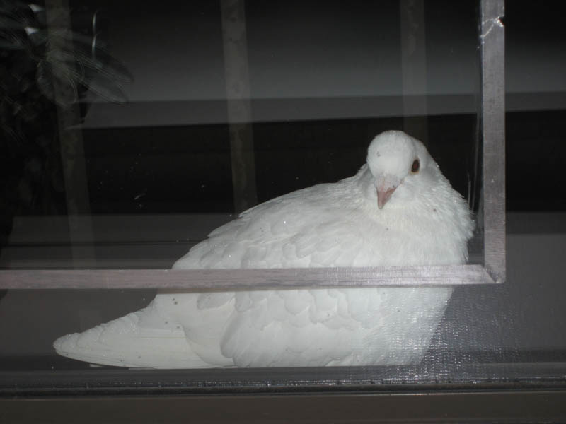 Tesla, the white pigeon, visited me this morning when the rest of the neighborhood was asleep. Though I don't feed him - he never misses an opportunity to stop by and say hi.
