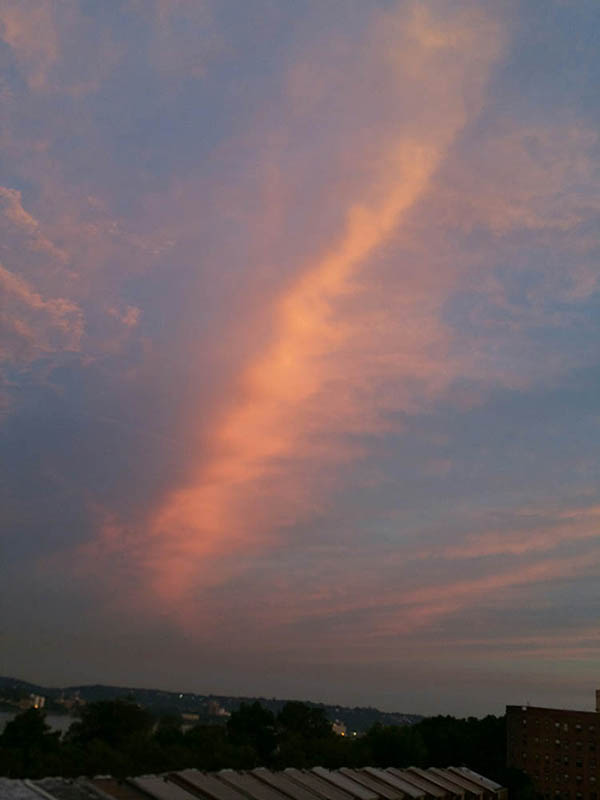 This unusual cloud formation, seen from my window this morning,