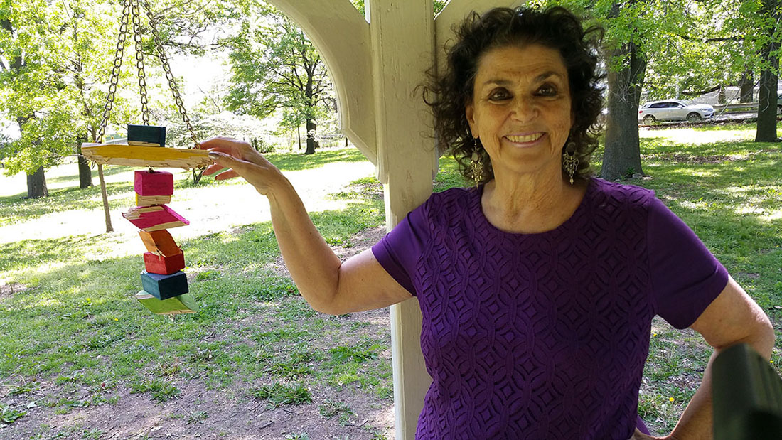 Today I returned to the Gazebo in Cannonball Park, across the street, with a client/friend named Joe after we finished his reading. There we discovered an interesting painted wooden object which looked liked chakras to Joe and balanced stones to me. We don't know were it came from, but interesting things are often left there. George and I once hung a clear quartz crystal from the top a few days before I did a crystal workshop in the park.